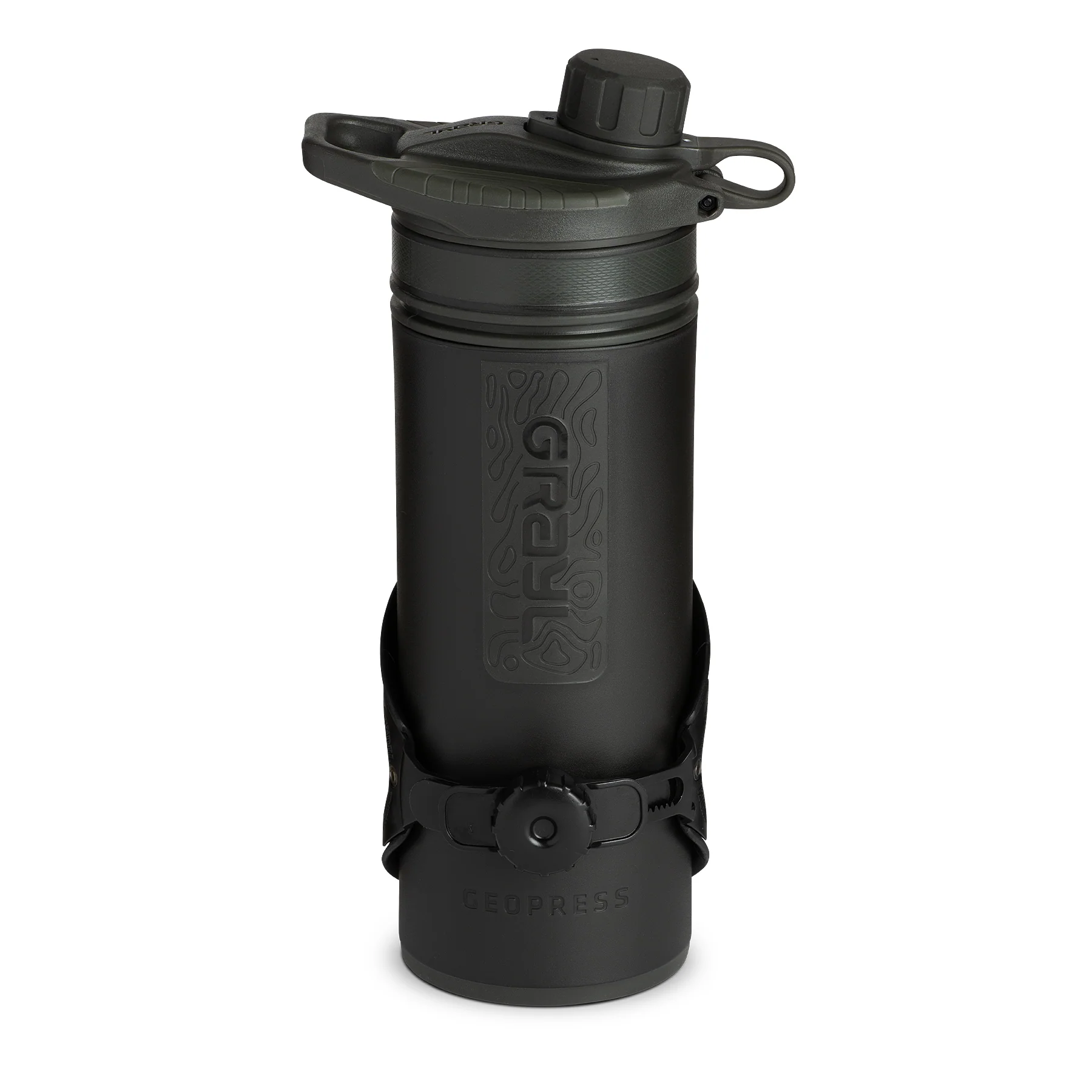 It's the perfect bottle cage for a Grayl. The Arundel® Looney Bin adjustable bike cage is equipped with a click wheel adjuster and tactile grip-lock to securely transport your GeoPress or UltraPress on a long gravel ride for endless river fill-ups!
